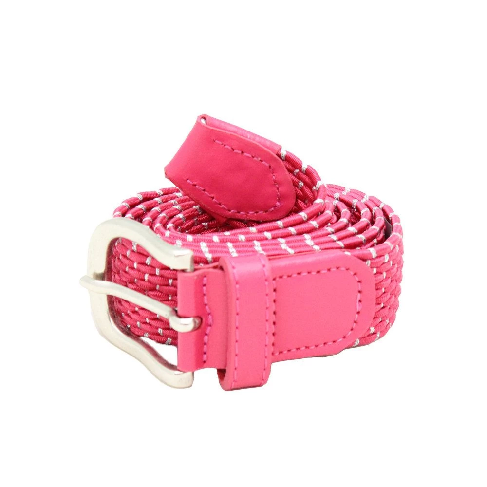 Deze stoffen riem heeft een stoere gevlochten look door het geweven patroon met lurexdraden. De riem is zeer flexibel.