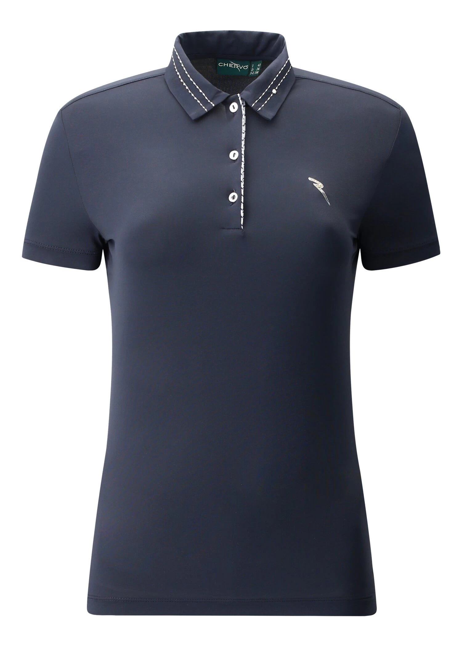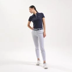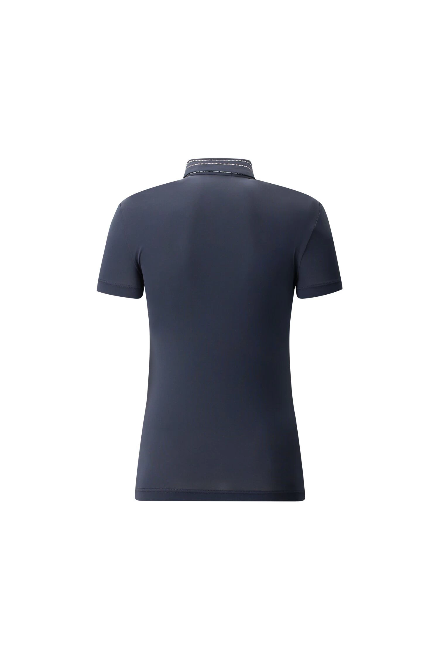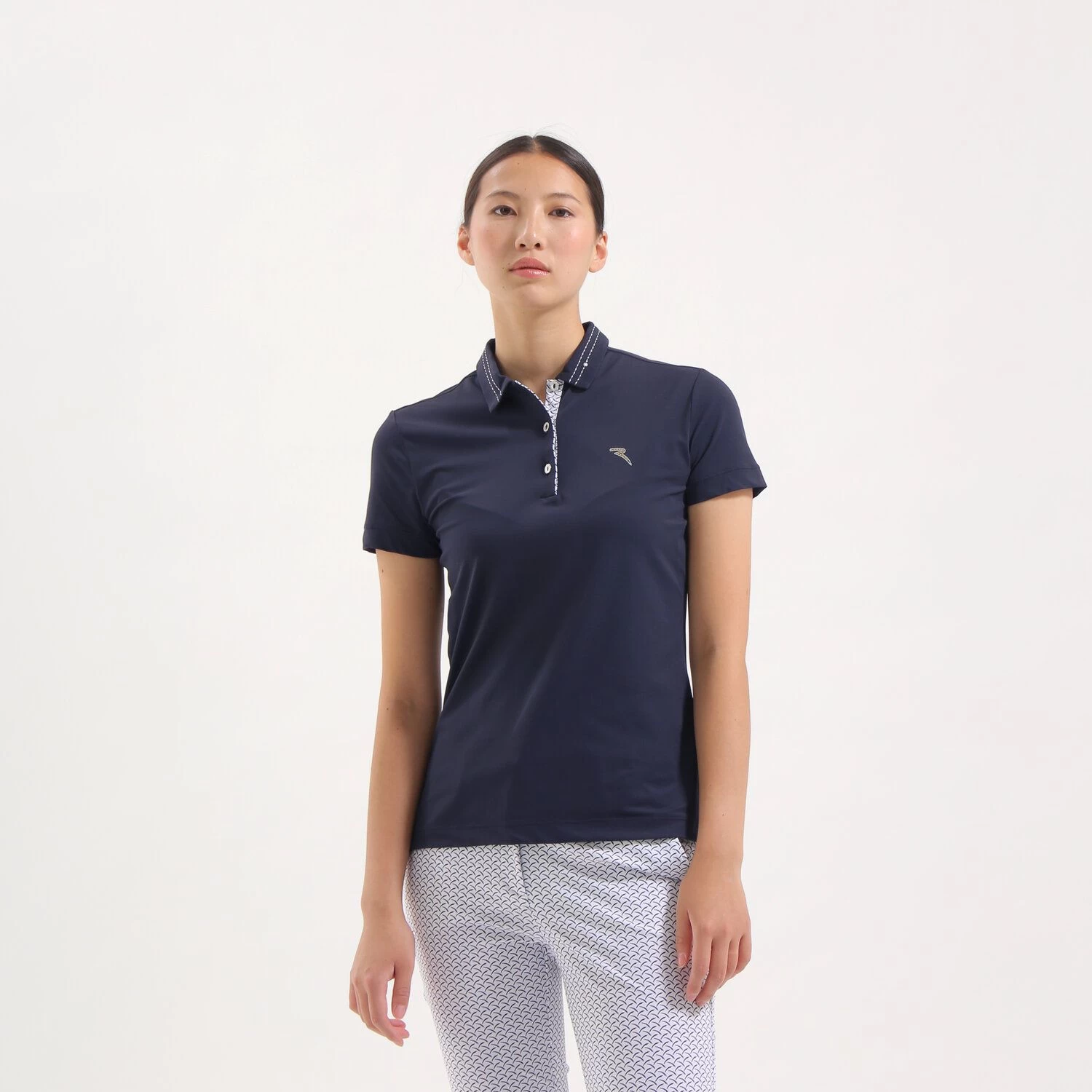 Het AAA damespoloshirt is gemaakt van stretchpiqué met ultralichte Dry-Matic technologie, wat zorgt voor een uitzonderlijk ademende stof en constante frisheid, ideaal voor tropische dagen. Het ontwerp heeft een dubbele kraag en volledig bedrukte stoffen inzetstukken. Verfijnde en vrouwelijke details zijn onder andere de zilveren knopen en het bijpassende bolvormige borduursel op de kraag. Er is ook een logoprint op de borst aanwezig.