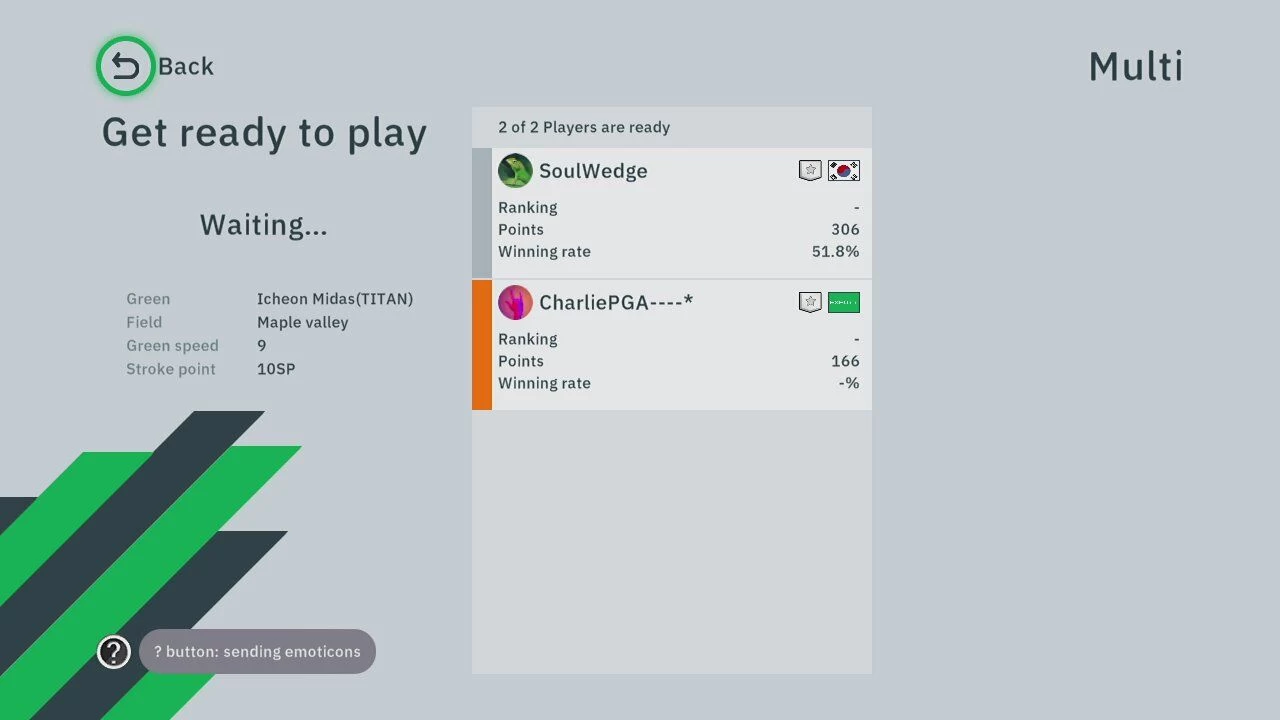 Speel 9 – Speel 9 holes zelf en maximaal 3 andere lokale spelers. Je kunt de baan selecteren en de eerste 9 holes of de tweede 9 holes kiezen.