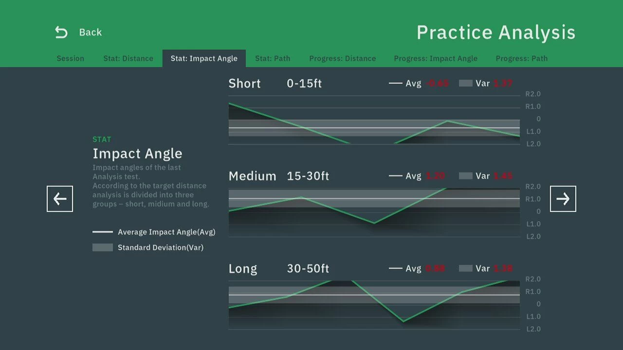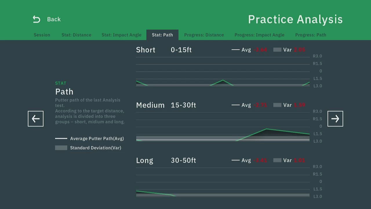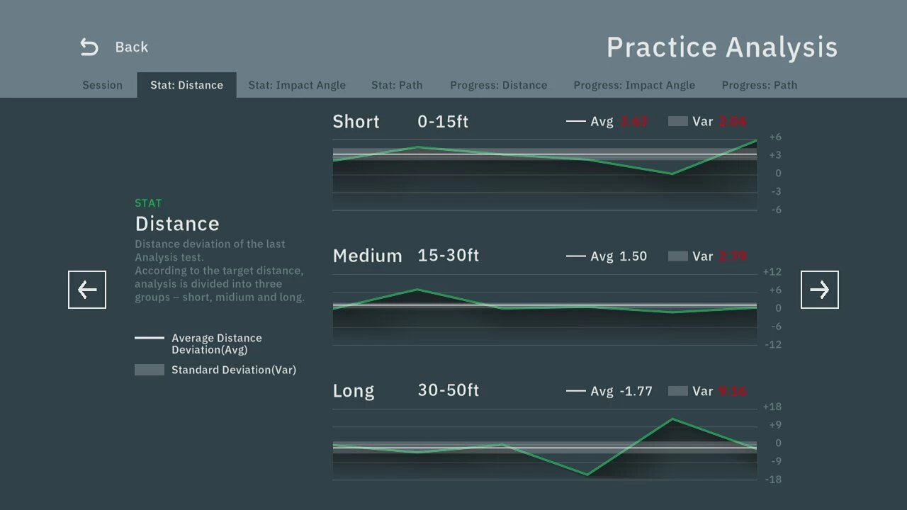 Practice – Krijg direct inzicht in je putspel door in de praktijk te oefenen en op verschillende afstanden op een green te putten. Bekijk vervolgens uw sessie om te begrijpen waar uw verbeteringen vandaan zullen komen.