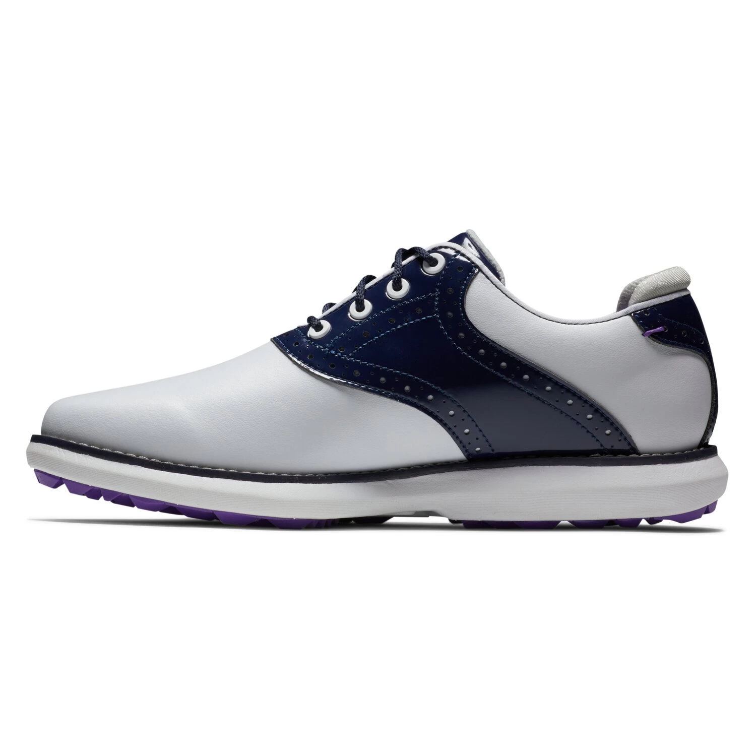 Ervaar volledige tractie zonder spikes met de FootJoy Traditions Spikeless golfschoenen voor dames. Deze schoenen zijn ontworpen om ronde na ronde gemakkelijk te kunnen worden onderhouden, terwijl ze lichtgewicht comfort bieden en super zacht schuim voor een ongelooflijk flexibele en comfortabele ronde. Het premium synthetische bovenwerk en de foam middenzool maken deze schoen extra comfortabel.