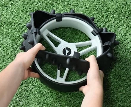 Deze winterbanden zorgen ervoor dat je ook in herfst- en winterweer goede grip hebt op de golfbaan met je elektrische trolley.